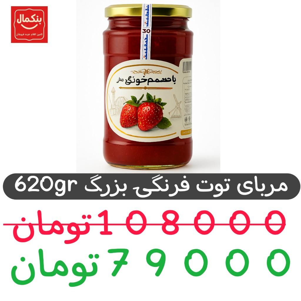مربای توت فرنگی 620گرم -شیشه بزرگ-6عددی