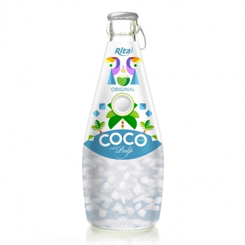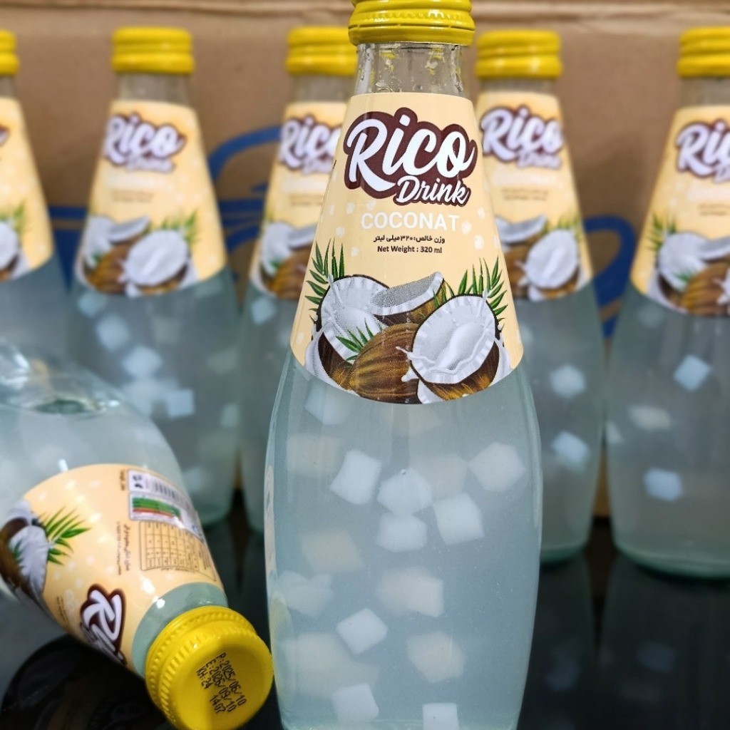 نوشیدنی آب نارگیل شیشه ای با تیکه نارگیل -330میل -24عددی