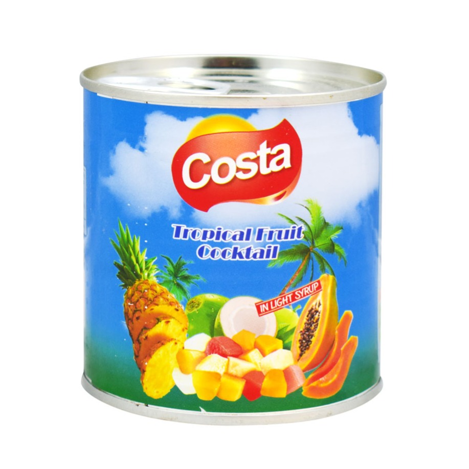 کمپوت مخلوط میوه های استوایی شامل میوه آناناس، نارگیل، پاپایا قرمز و پاپایا زرد است. از فواید میوه های استوایی می توان به منبعی عالی از ویتامین ها اشاره کرد. مصرف این محصول باعث افزایش وزن می شود که مناسب افراد لاغر یا افراد ورزشکار است. همچنین در درمان گرفتگی عضلات هم کمک می کند.