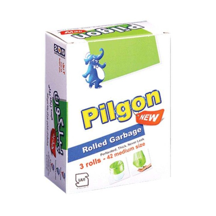 کیسه زباله تجدید پذیر پیلگون -سبز متوسط سه رول 55*80 پک 5 بسته ایی