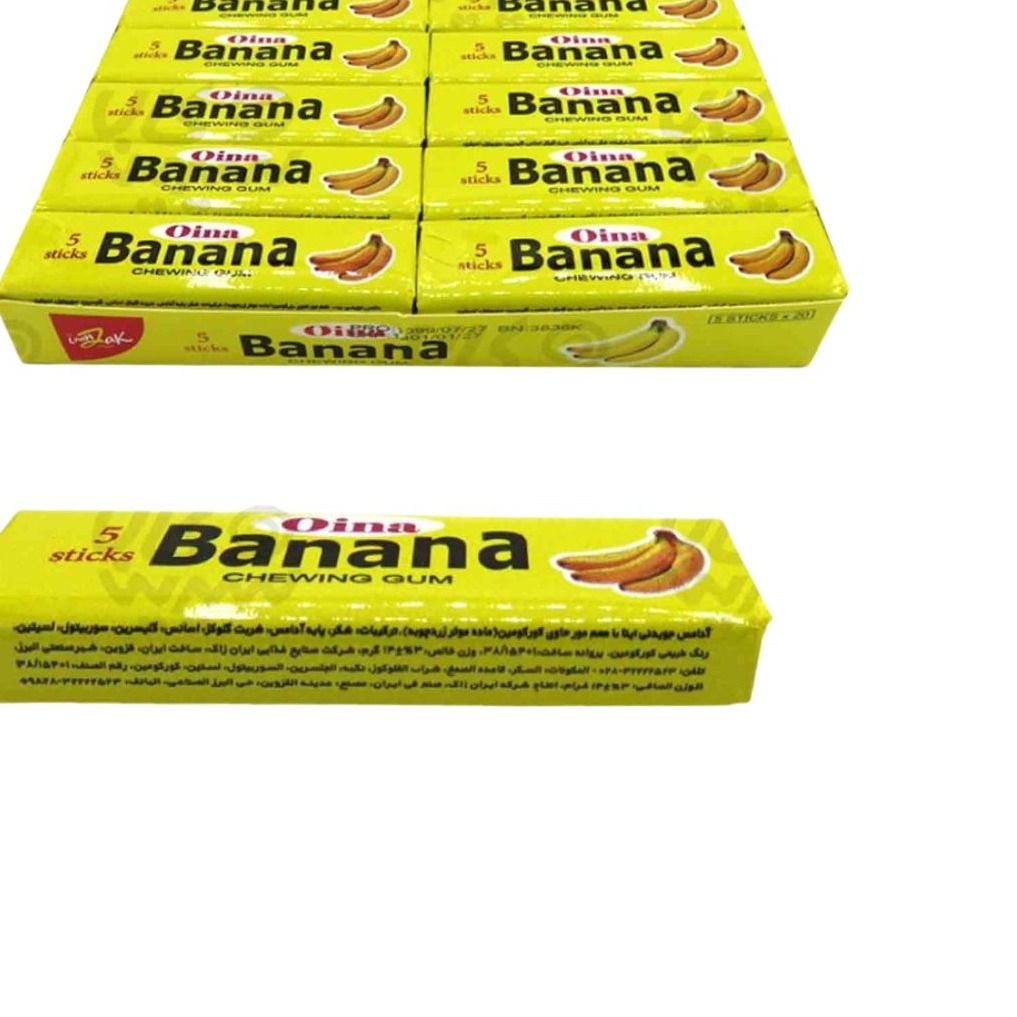 آدامس موزی با برند اوینا ساخت ایران در باکس بیست عددی